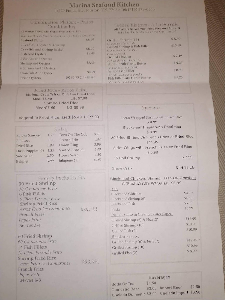 So why not treat yourself to an authentic seafood feast? Marina Seafood Kitchen invites you to indulge in a dining experience that is not only delightful but also filled with heart and care. Give them a call at +1 713-378-0588 to order your meal today or stop by to enjoy the welcoming atmosphere. Your taste buds will thank you!
